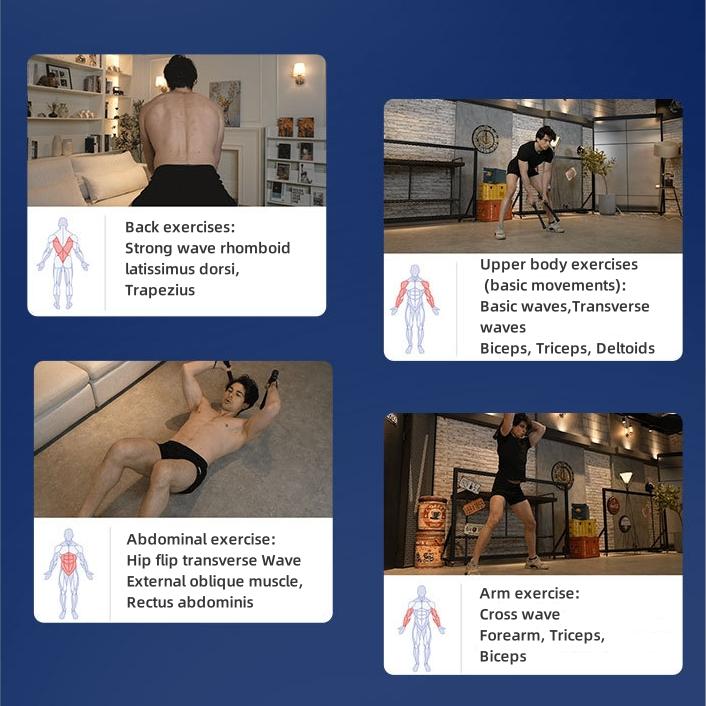 The Wireless Battling Rope offers over 13+ dynamic exercises to target every major muscle group—arms, chest, back, and legs. Unlike traditional gym equipment, provides unique muscle stimulation through its spring-loaded resistance, enhancing muscle activation and growth. When paired with heavy-weight training, delivers a 1+1 > 2 muscle detailing effect, helping you achieve a more defined and sculpted physique. Whether you're a beginner or a seasoned athlete, train your ultimate tool for full-body muscle building.